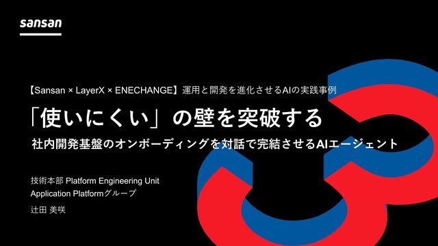 ■ 発表者 技術本部 Platform Engineering Unit 辻田 美咲