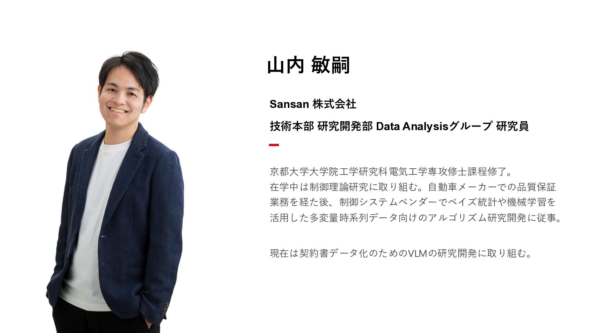 1. 写真が入ります 山内 敏嗣 Sansan 株式会社 技術本部 研究開発部 Data Analysisグループ 研究員