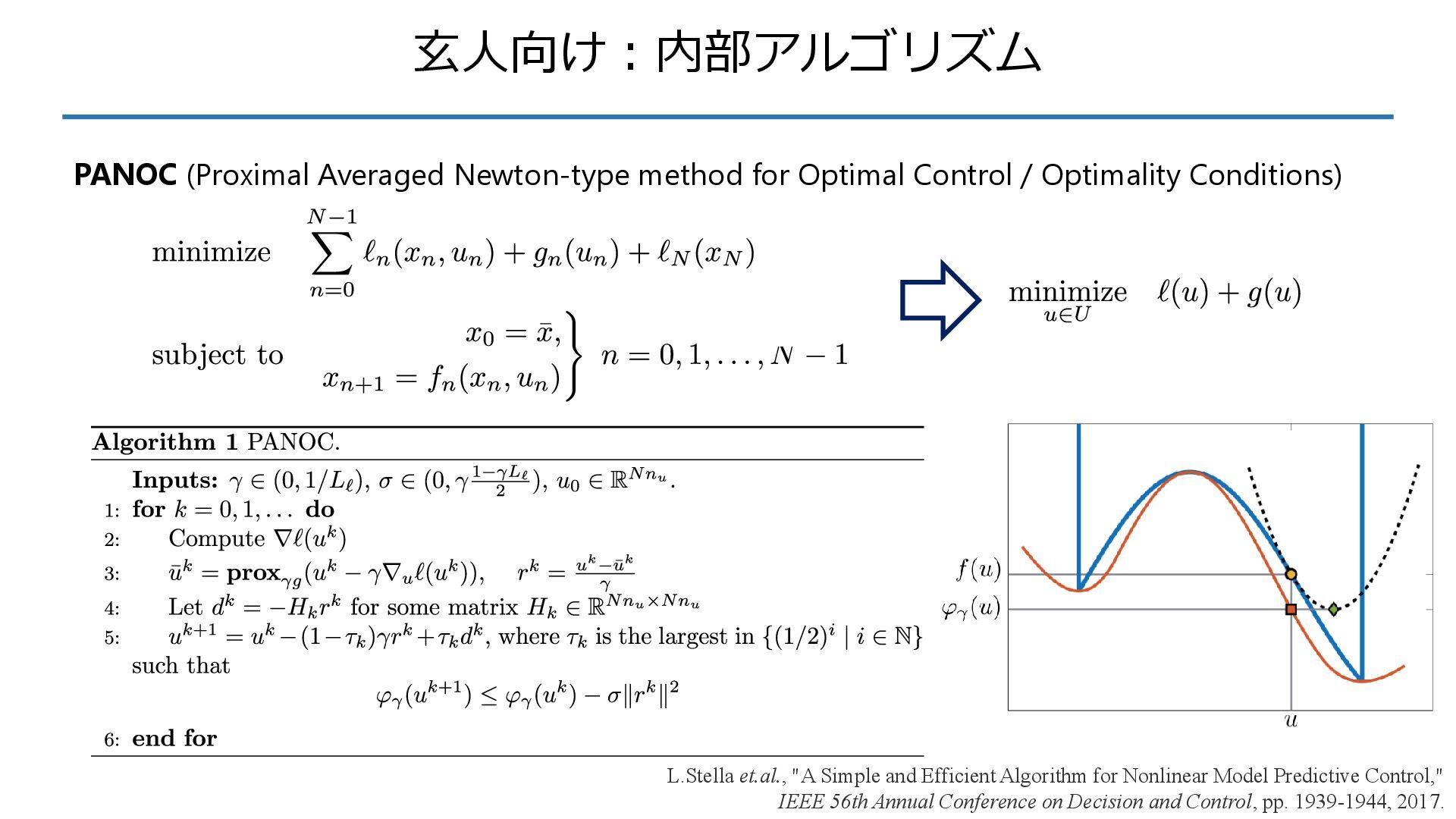 玄人向け:内部アルゴリズム PANOC (Proximal Averaged Newton-type method for Optimal Control /