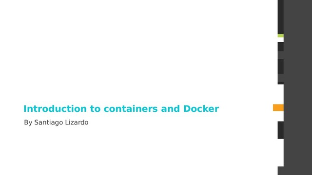 language • Client - Server (deamon) architecture • Union file systems (UnionFS: AUFS, btrfs, vfs etc) • Namespaces (pid, net, ipc, mnt, uts) • Control Groups (cgroups) • Container format (libcontainer)