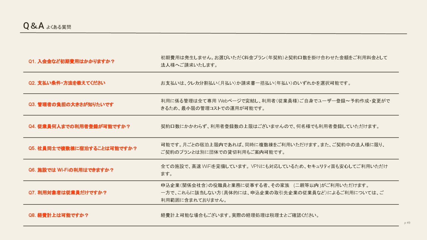Home SANU / SANU 2nd Homeについて 2. Locations 展開エリア 3. Architecture 滞在施設 4. Price Plan 料金プラン 5. Users Voice 導入企業・利用者の声 6. How to register for membership 導入までの流れ p 46