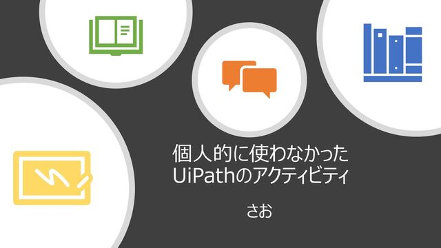 今回の趣旨 • アクティビティとは…自動化で必要な部品 • UiPathのアクティビティは、とても数えきれないほど多く存在 • その中で「個人的に」全然使わなかった、あったのは知ってたけど… というアクティビティをピックアップします~。 ※なので、皆さんの中には「んなことねぇべ」「ほかもあるっちゃ」という意見もあると思いますが 楽しんでいただければ幸いです。
