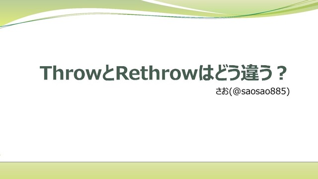 目次 開発当初・・・ Throwとは/使い方 Exception(例外の種類) Rethrowとは/使い方