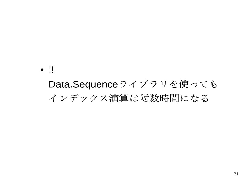 21 • !! Data.Sequenceライブラリを使っても インデックス演算は対数時間になる