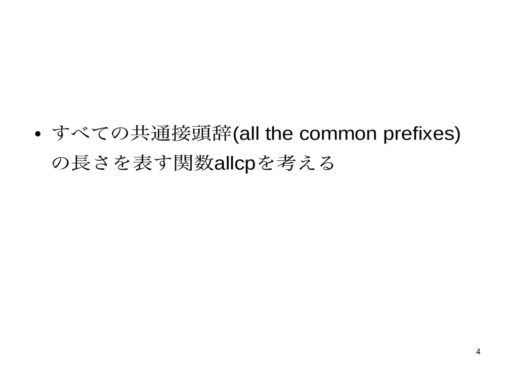 4 • すべての共通接頭辞(all the common prefixes) の長さを表す関数allcpを考える