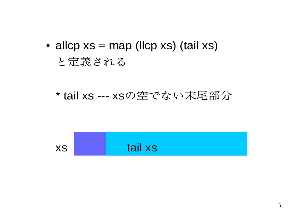 6 • allcp xs の定義を直接実行するとo(n^2) 線形時間にしたい