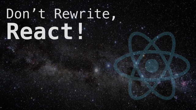 Let's face it, most apps take year to build. Time, money... it's not something you can easily toss aside for the latest JS Framework hotness. The great thing about React is that it's a library. A library that can easily be integrated to bring these legacy apps into an ES6/one-page world.