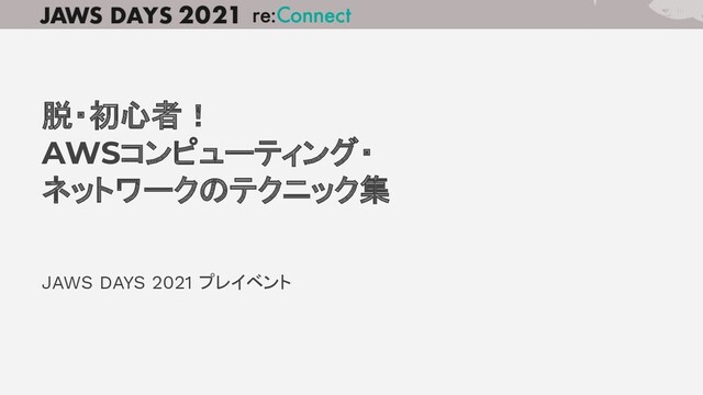 JAWS DAYS 2021 プレイベント 脱・初心者! AWSコンピューティング・ ネットワークのテクニック集