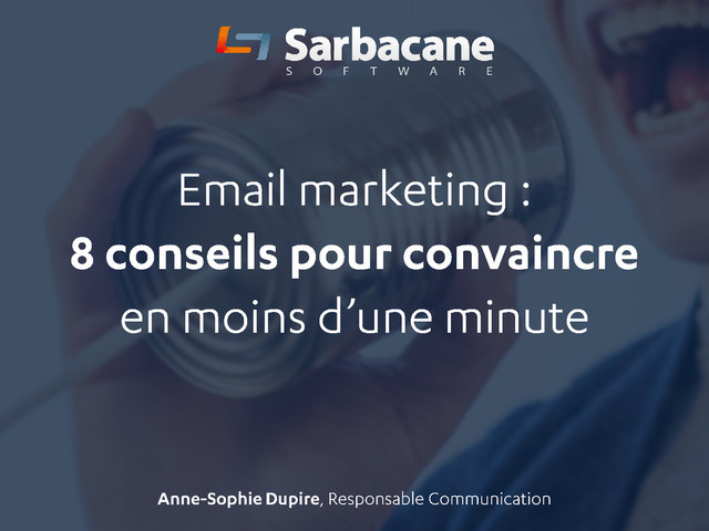 Arrivée en boite de réception, votre campagne emailing a 2 secondes pour se démarquer des autres messages, puis elle a 10 secondes pour inciter le destinataire à cliquer. Anne-Sophie Dupire, Responsable Communication de Sarbacane Software, vous apporte 8 conseils pour optimiser vos campagnes emailing et convaincre vos destinataires en moins d’une minute.