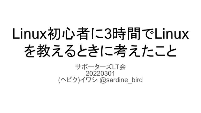 Linux初心者に3時間でLinux を教えるときに考えたこと サポーターズLT会 20220301 (ヘビク)イワシ @sardine_bird