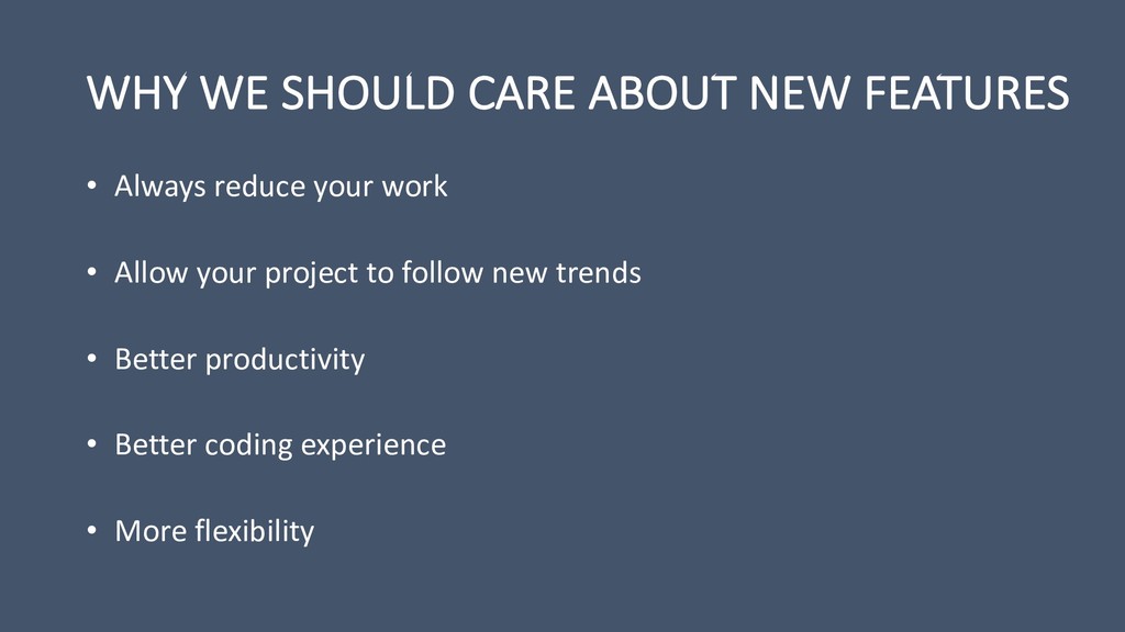 Compatibility with new technologies • Like Laravel 5.6 includes Argon2 password hashing • Bootstrap 4 • Re-structured • Like routes file is moved from app/http/routes.php -> routes/web.php file