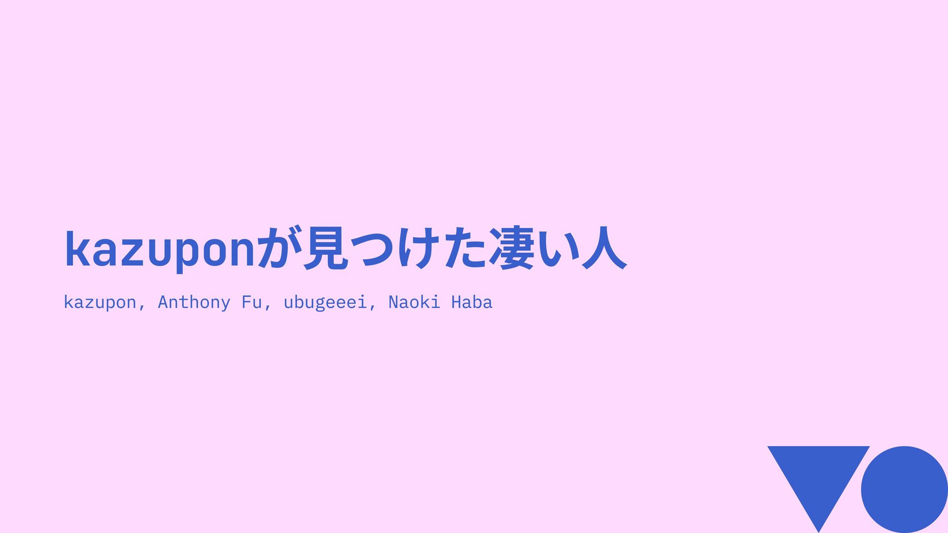 kazuponが見つけた凄い人 kazupon, Anthony Fu, ubugeeei, Naoki Haba