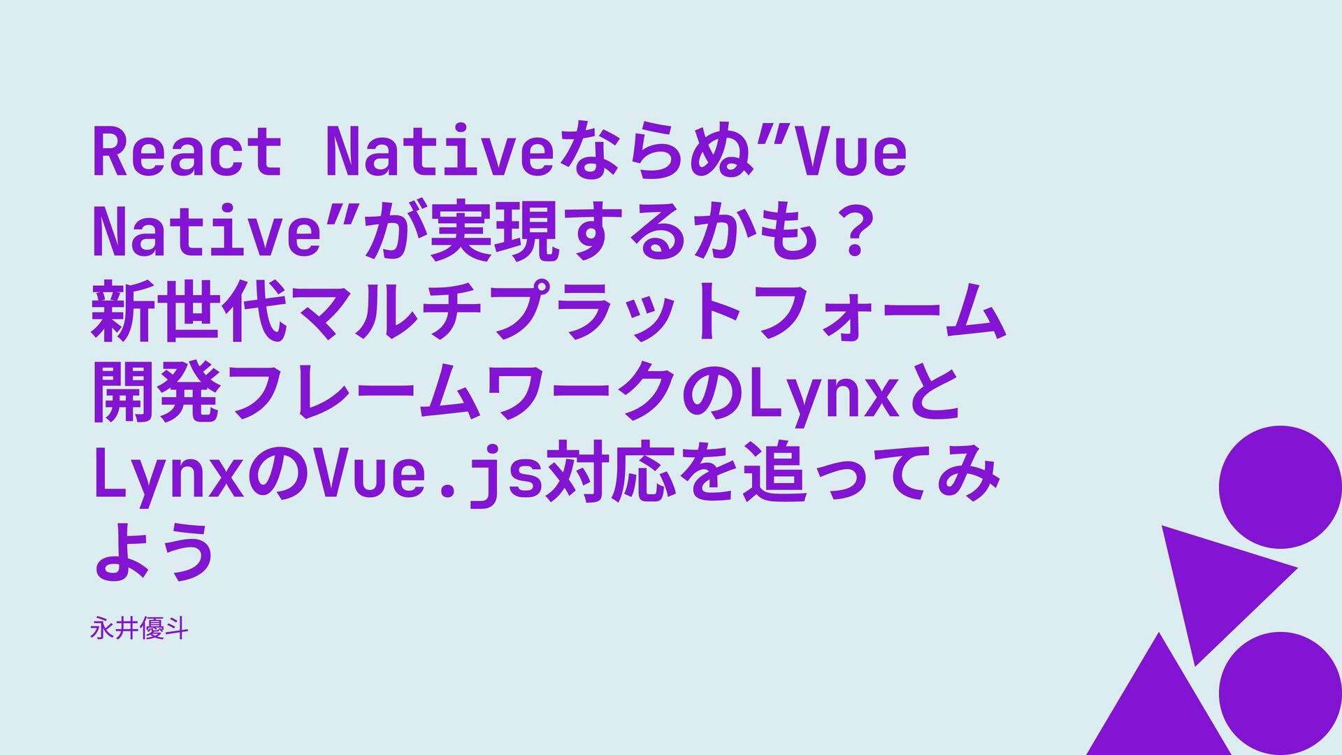 React Nativeならぬ”Vue Native”が実現するかも? 新世代マルチプラットフォーム 開発フレームワークのLynxと LynxのVue.js対応を追ってみ よう 永井優斗