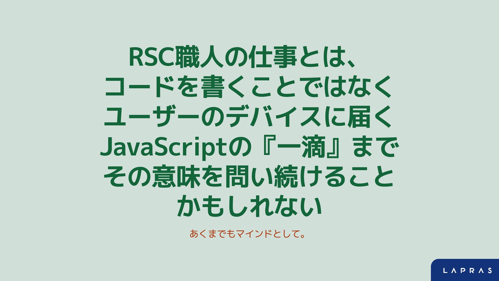 RSC職人の仕事とは、 コードを書くことではなく ユーザーのデバイスに届く JavaScriptの『一滴』まで その意味を問い続けること かもしれない あくまでもマインドとして。