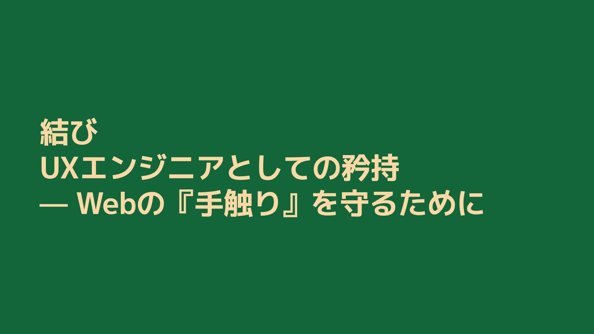 結び UXエンジニアとしての矜持 — Webの『手触り』を守るために