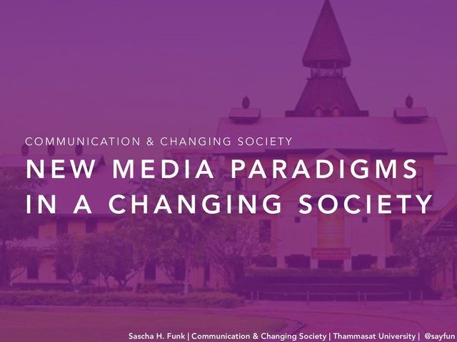 A D I G M S I N A C H A N G I N G S O C I E T Y C O M M U N I C AT I O N & C H A N G I N G S O C I E T Y Sascha H. Funk | Communication & Changing Society | Thammasat University | @sayfun