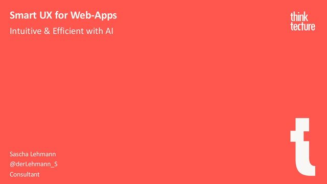 We’re talking about lengthy and complex forms. Sascha Lehmann from Thinktecture has the answer and will demonstrate, using a real-world example, how well-designed AI features and UX concepts can make filling out web forms effortless. Discover how a transparent, intuitive, and convincing user experience is created.