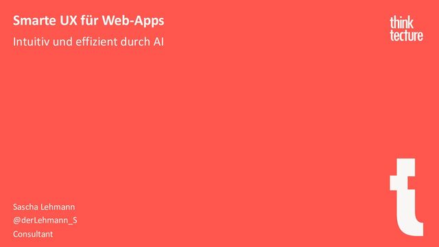 Die Rede ist von langatmigen und komplex auszufüllenden Formularen. Sascha Lehmann von Thinktecture hat eine Antwort darauf und zeigt anhand eines Praxisbeispiels, wie durchdachte AI-Features und UX-Konzepte das Ausfüllen von Webformularen zum Kinderspiel machen. Erleben Sie, wie eine transparente, verständliche und überzeugende Nutzererfahrung entsteht.