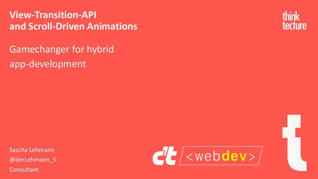 That’s right. They WERE. This gap can now also be closed thanks to the new View Transition API and Scroll-Driven Animations. And the best thing about it: everything is done almost exclusively using CSS. Curious? Then Sascha Lehmann from Thinktecture will give you an overview of the new APIs, how you can use them effectively in your project and where their limits lie.