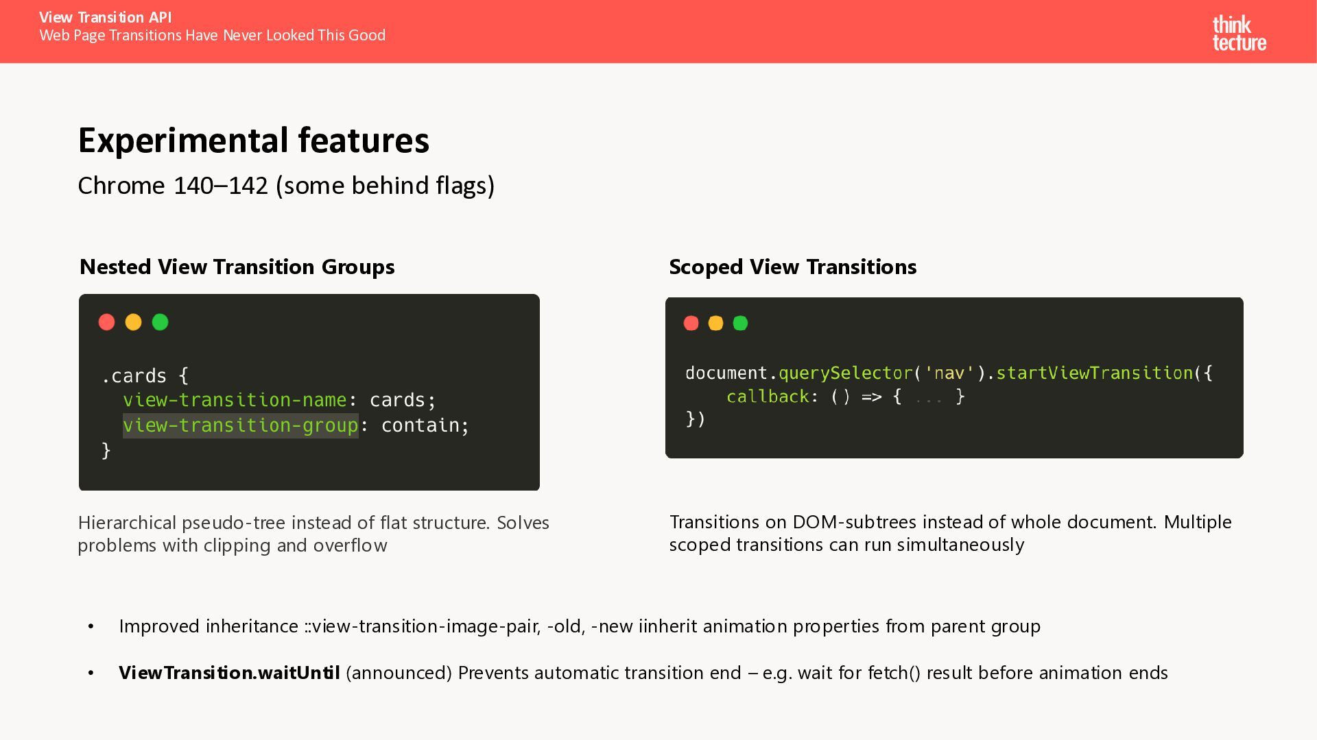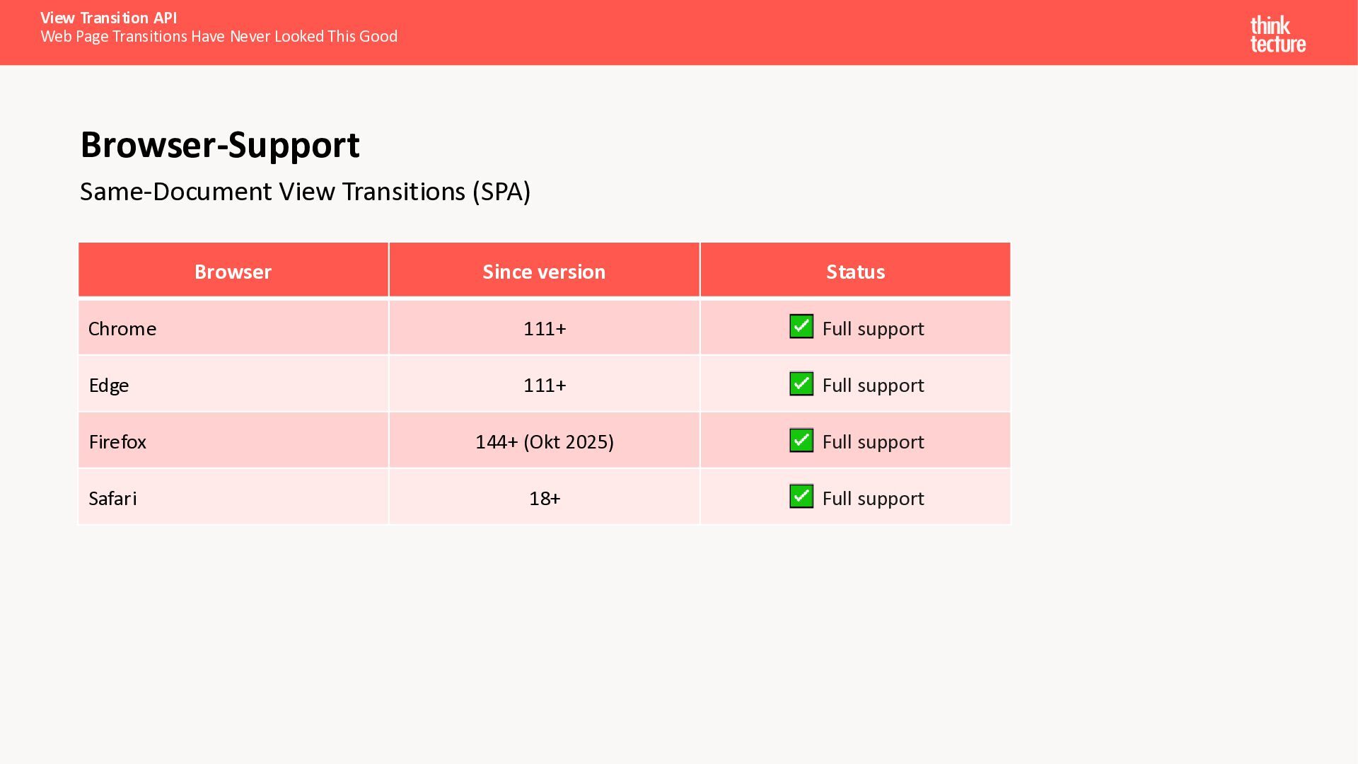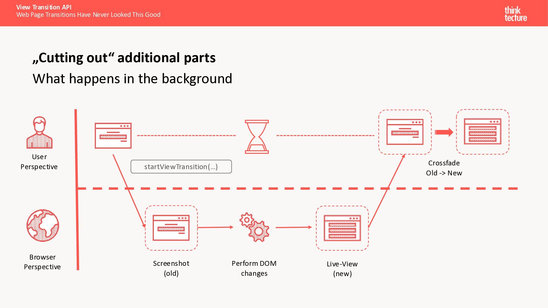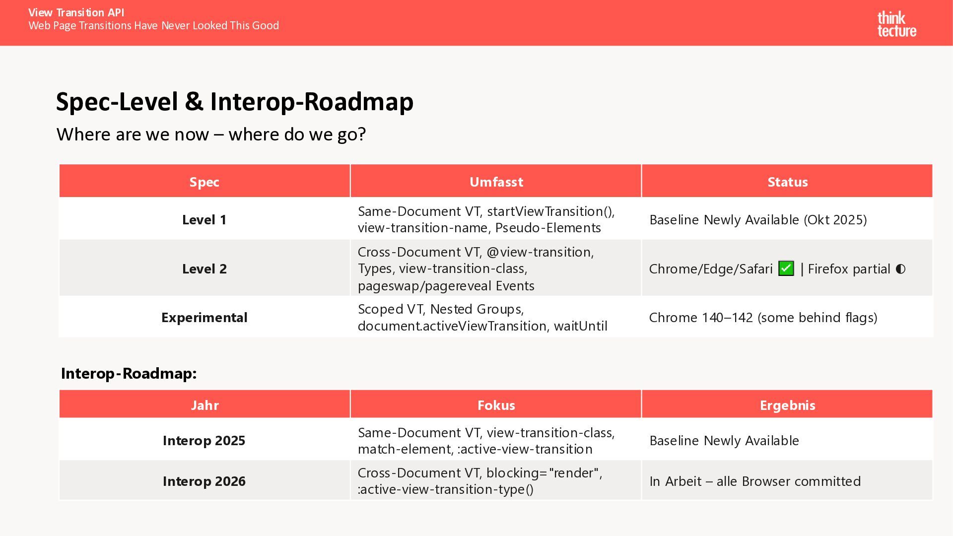 Als Entwickler bauen wir nicht nur Interfaces – wir gestalten Erlebnisse. Mit der View Transition API, inzwischen in allen gängigen Browsern verfügbar, lassen sich flüssige Übergangsanimationen schaffen, die Nutzer begeistern – und das ganz ohne zusätzliche Libraries, allein mit der Power von CSS. Dank der jüngsten Weiterentwicklungen funktioniert die API nicht nur in SPAs, sondern ermöglicht jetzt auch elegante, animierte Übergänge im Multi-Page-Kontext.In diesem Talk werfen wir einen Blick unter die Haube: Wir erklären, wie die API funktioniert, zeigen gängige Anwendungsmuster und verwandeln dadurch eine schlichte Web-Applikation in ein Erlebnis, das Eindruck hinterlässt.