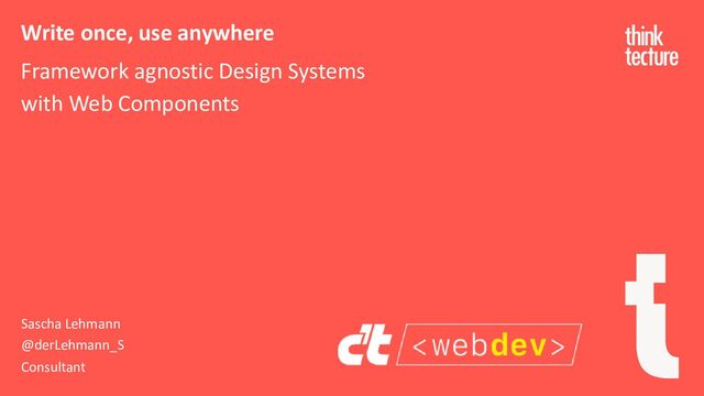 In this session, Sascha Lehmann from Thinktecture will show you how you can build highly customizable and lightweight web components with the help of "Lit," what pitfalls you need to watch out for when architecting the library and how you can achieve the highest possible compatibility by using the APIs that the browser gives us.