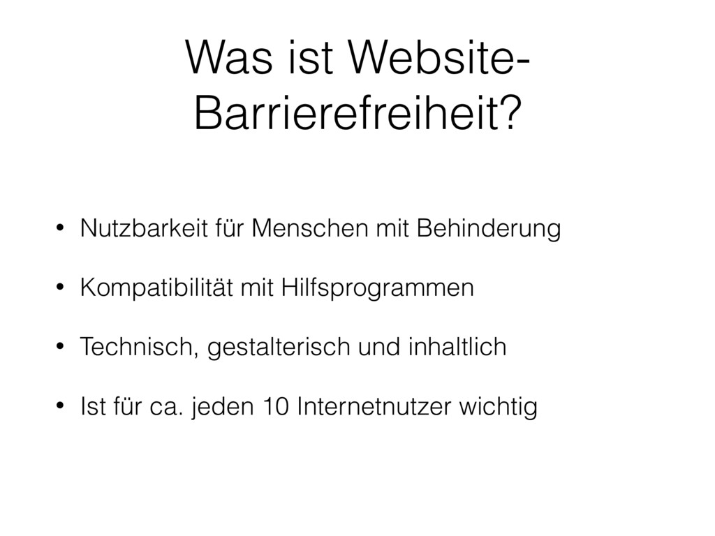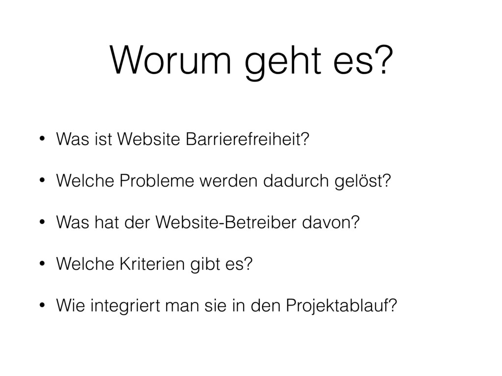 Worum geht es? • Was ist Website Barrierefreiheit? • Welche