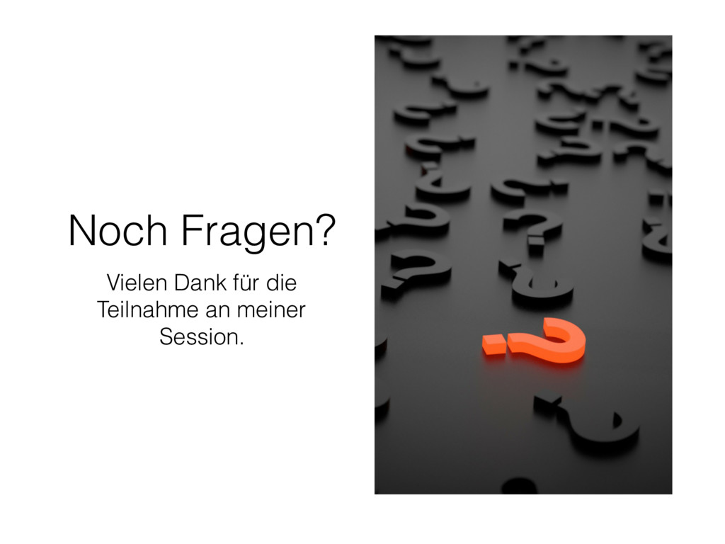 Noch Fragen? Vielen Dank für die Teilnahme an meiner Session.