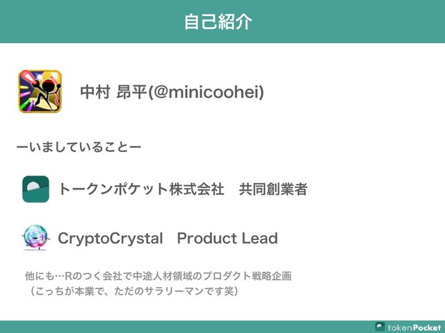 【ブロックチェーンウォレットについての説明】 ・発表者 TokenPocket Co-Founder 中村 昂平 https://tokenpocket.jp/