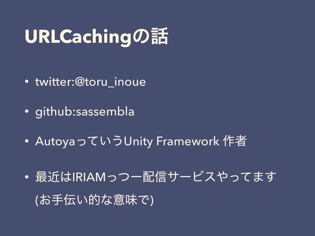 URLCachingͷ • twitter:@toru_inoue • github:sassembla • Autoya͍ͬͯ͏Unity Framework ࡞ऀ •
