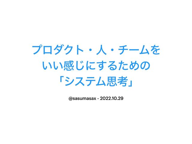 ϓϩμΫτɾਓɾνʔϜΛ ͍͍ײ͡ʹ͢ΔͨΊͷ ʮγεςϜࢥߟʯ @sasumasax - 2022.10.29