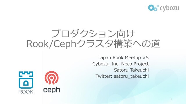 プロダクション向け Rook/Cephクラスタ構築への道 Japan Rook Meetup #5 Cybozu, Inc. Neco Project