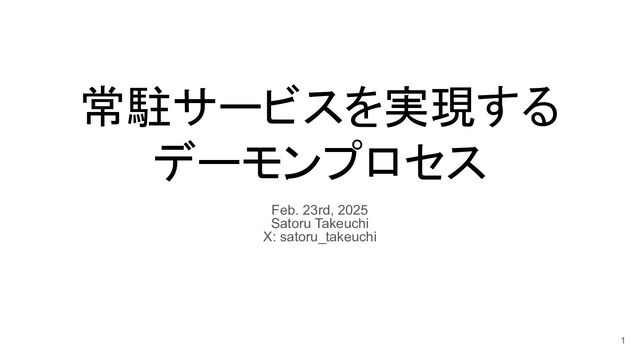 常駐サービスを実現する デーモンプロセス Feb. 23rd, 2025 Satoru Takeuchi X: satoru_takeuchi 1