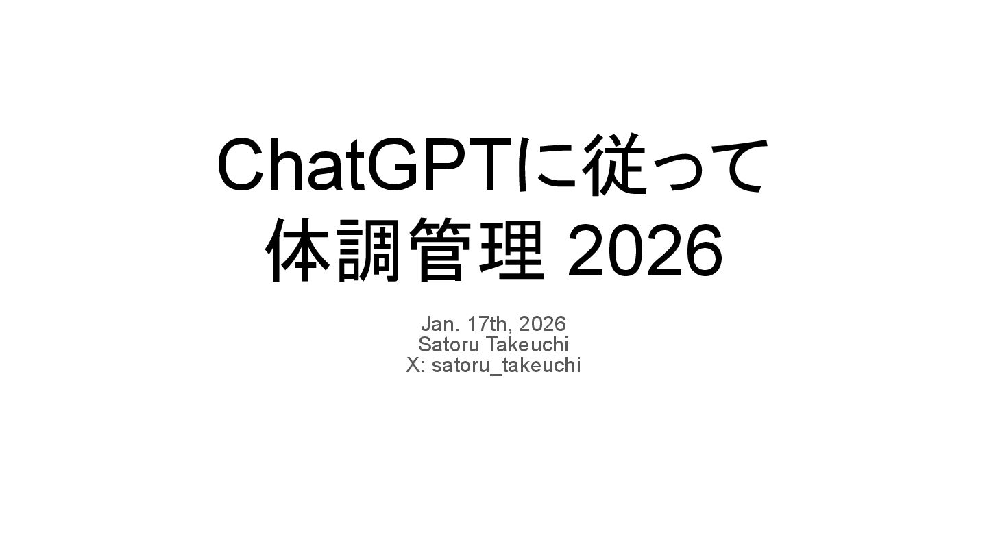 ChatGPTに従って 体調管理 2026 Jan. 17th, 2026 Satoru Takeuchi X: satoru_takeuchi