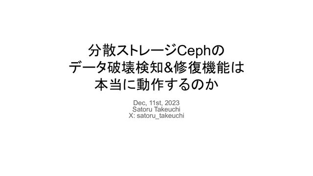 分散ストレージCephの データ破壊検知&修復機能は 本当に動作するのか Dec, 11st, 2023 Satoru Takeuchi X: satoru_takeuchi