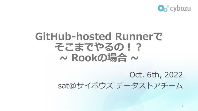 GitHub-hosted Runnerで そこまでやるの!? ~ Rookの場合 ~ Oct. 6th, 2022 sat@サイボウズ