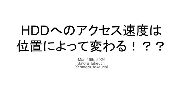 HDDへのアクセス速度は 位置によって変わる!?? Mar. 16th, 2024 Satoru Takeuchi X: satoru_takeuchi