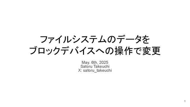 ファイルシステムのデータを ブロックデバイスへの操作で変更 May. 6th, 2025 Satoru Takeuchi X: satoru_takeuchi 1
