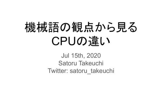 機械語の観点から見る CPUの違い Jul 15th, 2020 Satoru Takeuchi Twitter: satoru_takeuchi