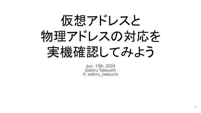 仮想アドレスと 物理アドレスの対応を 実機確認してみよう Jun. 15th, 2024 Satoru Takeuchi X: satoru_takeuchi
