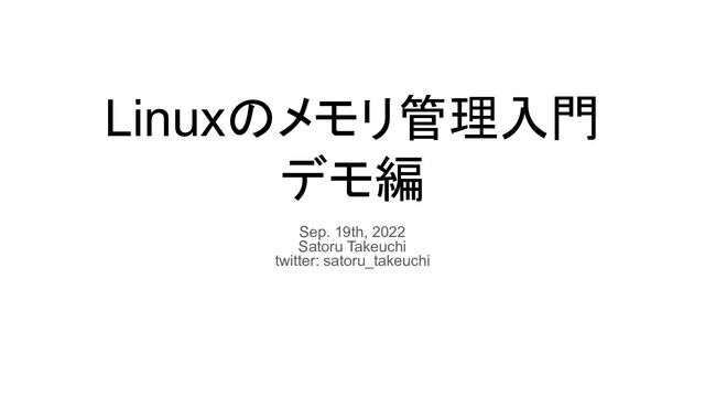Linuxのメモリ管理入門 デモ編 Sep. 19th, 2022 Satoru Takeuchi twitter: satoru_takeuchi
