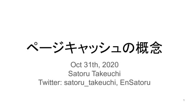 ページキャッシュの概念 Oct 31th, 2020 Satoru Takeuchi Twitter: satoru_takeuchi, EnSatoru 1