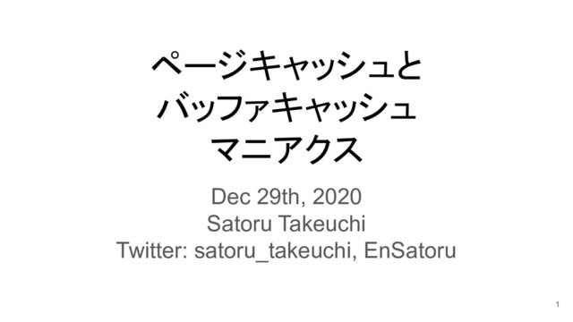 ページキャッシュと バッファキャッシュ マニアクス Dec 29th, 2020 Satoru Takeuchi Twitter: satoru_takeuchi,