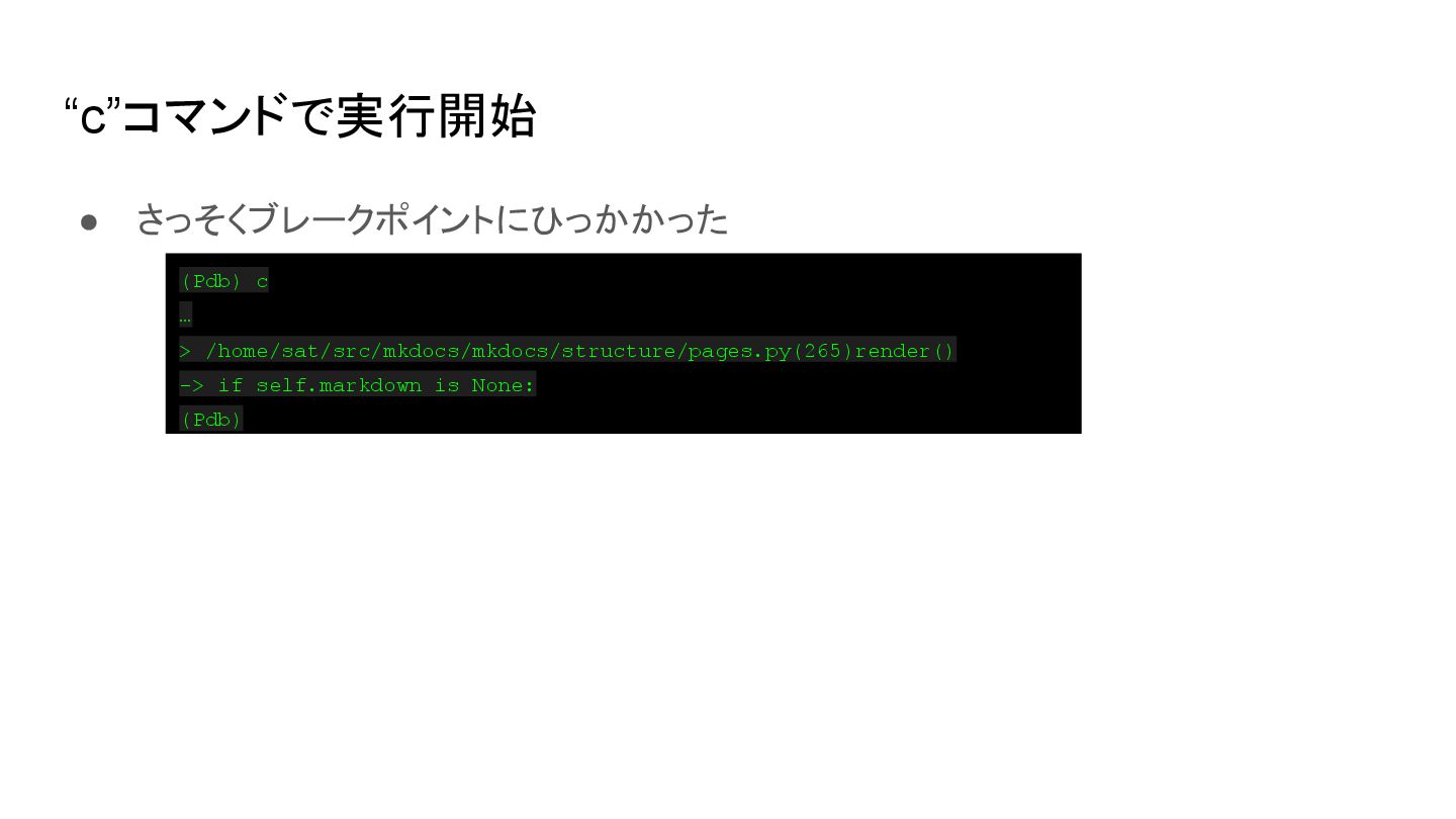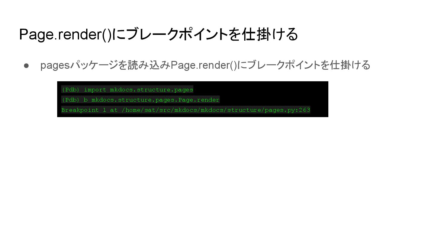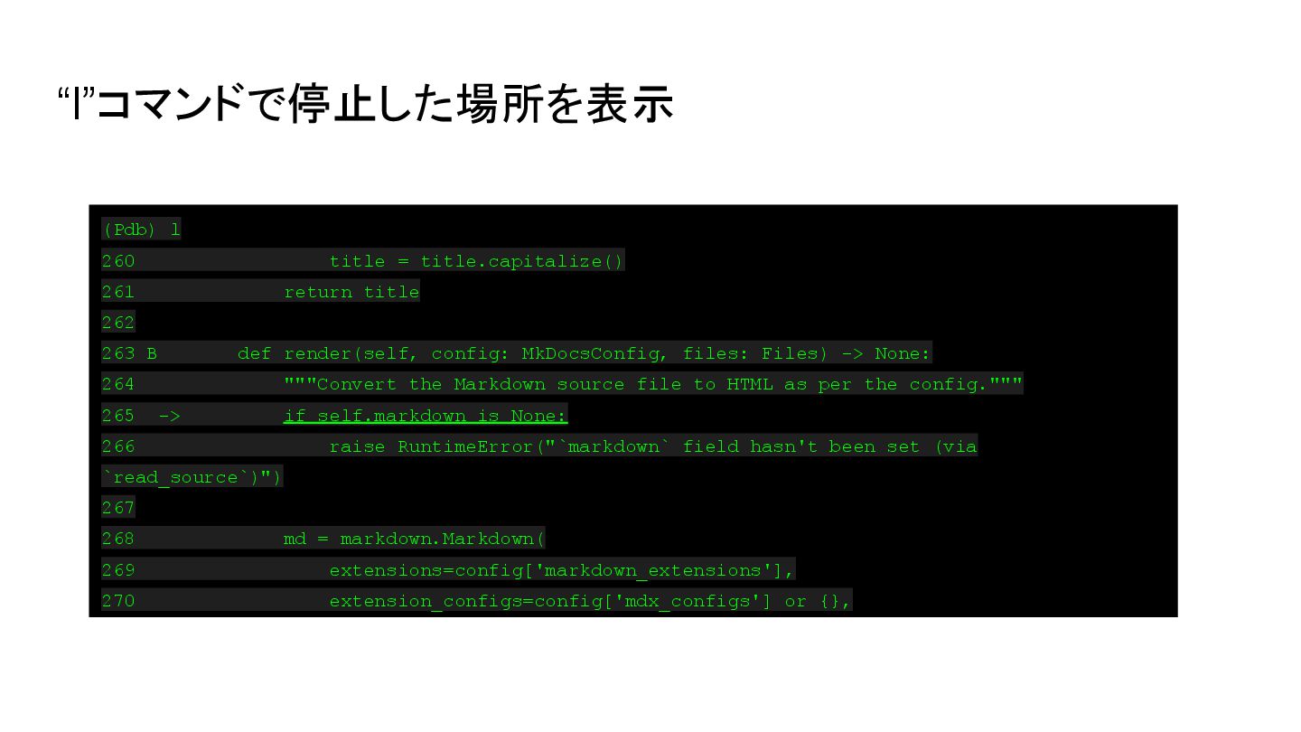 /home/sat/src/mkdocs/mkdocs/__main__.py(370)<module>() … -> serve.serve(**kwargs) /home/sat/src/mkdocs/mkdocs/commands/serve.py(85)serve() -> builder(config) /home/sat/src/mkdocs/mkdocs/commands/serve.py(67)builder() -> build(config, serve_url=None if is_clean else serve_url, dirty=is_dirty) /home/sat/src/mkdocs/mkdocs/commands/build.py(310)build() -> _populate_page(file.page, config, files, dirty) /home/sat/src/mkdocs/mkdocs/commands/build.py(167)_populate_page() -> page.render(config, files) > /home/sat/src/mkdocs/mkdocs/structure/pages.py(265)render() -> if self.markdown is None: