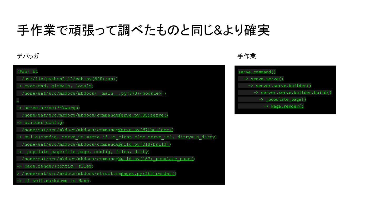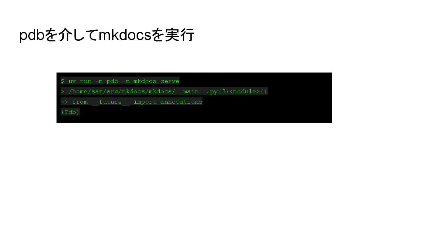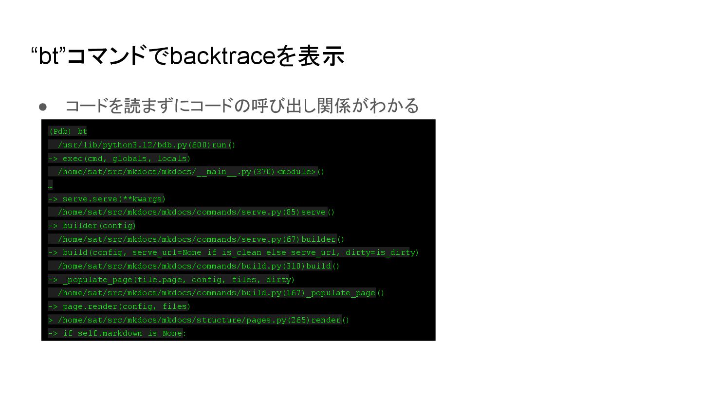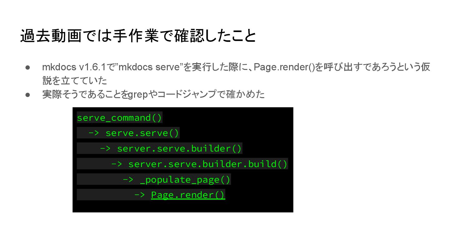 /home/sat/src/mkdocs/mkdocs/__main__.py(370)<module>() … -> serve.serve(**kwargs) /home/sat/src/mkdocs/mkdocs/commands/serve.py(85)serve() -> builder(config) /home/sat/src/mkdocs/mkdocs/commands/serve.py(67)builder() -> build(config, serve_url=None if is_clean else serve_url, dirty=is_dirty) /home/sat/src/mkdocs/mkdocs/commands/build.py(310)build() -> _populate_page(file.page, config, files, dirty) /home/sat/src/mkdocs/mkdocs/commands/build.py(167)_populate_page() -> page.render(config, files) > /home/sat/src/mkdocs/mkdocs/structure/pages.py(265)render() -> if self.markdown is None: