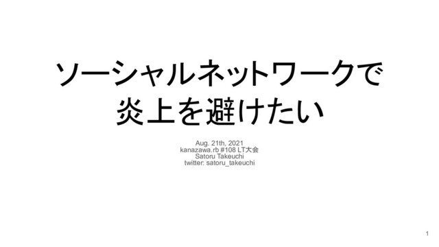 ソーシャルネットワークで 炎上を避けたい Aug. 21th, 2021 kanazawa.rb #108 LT大会 Satoru Takeuchi
