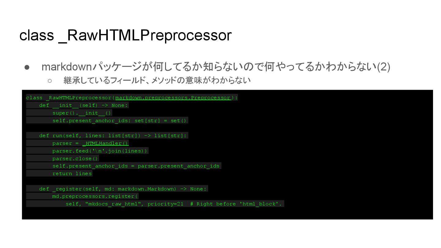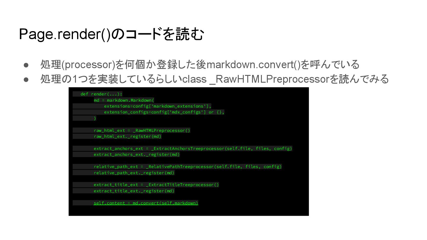 markdown.Markdown( extensions=config['markdown_extensions'], extension_configs=config['mdx_configs'] or {}, ) raw_html_ext = _RawHTMLPreprocessor() raw_html_ext._register(md) extract_anchors_ext = _ExtractAnchorsTreeprocessor(self.file, files, config) extract_anchors_ext._register(md) relative_path_ext = _RelativePathTreeprocessor(self.file, files, config) relative_path_ext._register(md) extract_title_ext = _ExtractTitleTreeprocessor() extract_title_ext._register(md) self.content = md.convert(self.markdown)