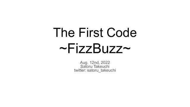 The First Code ~FizzBuzz~ Aug. 12nd, 2022 Satoru Takeuchi twitter: