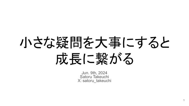 小さな疑問を大事にすると 成長に繋がる Jun. 9th, 2024 Satoru Takeuchi X: satoru_takeuchi 1