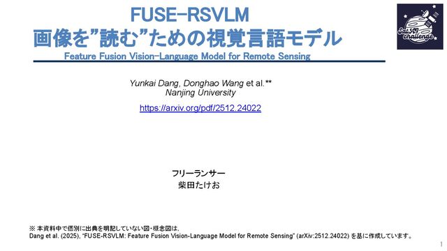 Dang et al. (2025), “FUSE-RSVLM: Feature Fusion Vision-Language Model for Remote Sensing” arXiv:2512.24022. より引用