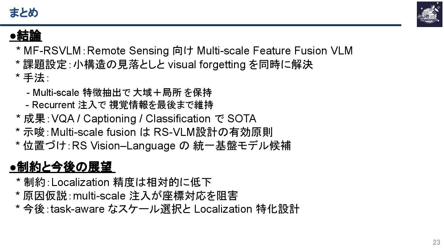 SatAI.challengeは、リモートセンシング技術にAIを適用した論文の調査や、より俯瞰した技術トレンドの調査や国際学会のメタサーベイを行う研究グループです。speakerdeckではSatAI.challenge内での勉強会で使用した資料をWeb上で共有しています。
